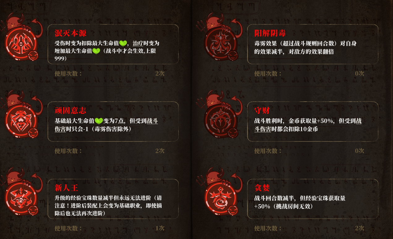 冒险中勇士们可能还会碰到噩梦纹章。这些纹章效果强力但伴随着一定的风险,并且一旦装备就无法卸下,需要谨慎使用。