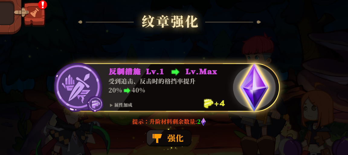 勇士们也可以通过强化石,来对纹章进行升级。升级后的纹章效果会更加强力!