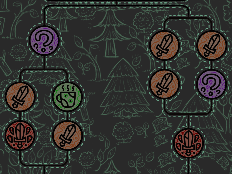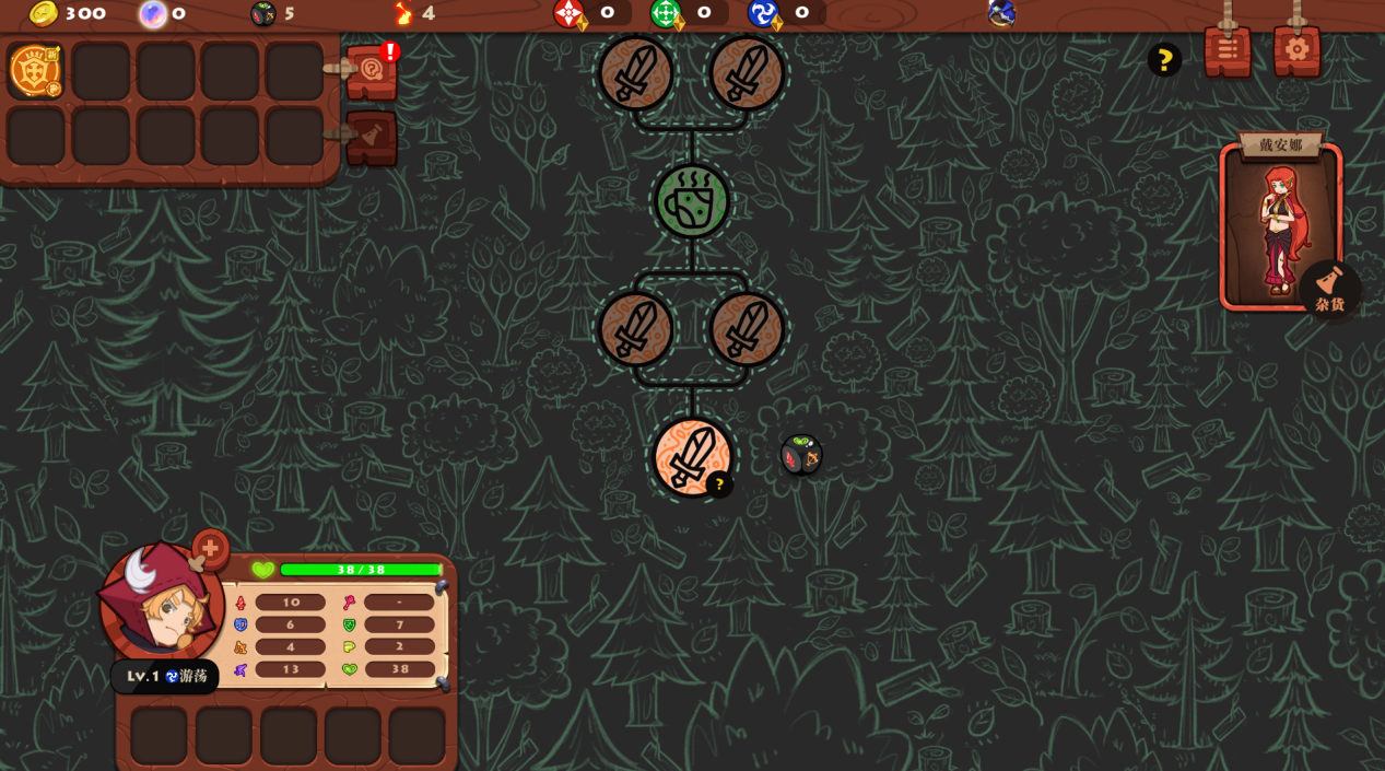 【地图界面】开始冒险后,能看到前进的路线、角色界面以及背包道具。由于冒险没有回头路,因此要仔细规划前进的路线。