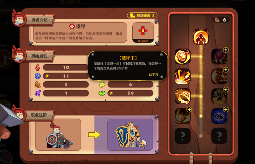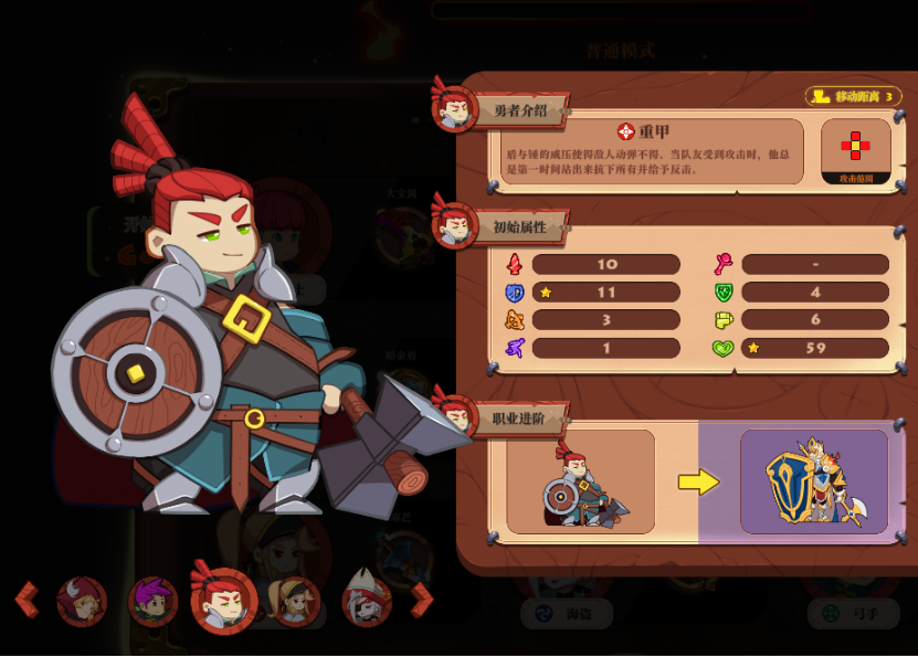 9个勇者中,重甲拥有很高的生命值和防守能力,是一个实打实的肉盾,意味着生存能力强。重甲可以让新手有着更高的容错率,反正扛得住,一点点去磨死敌人。虽然说会让每一局战斗流程相对变长,不过求稳才是王道,新手要的就是如何保证自己不死,能通关即可。