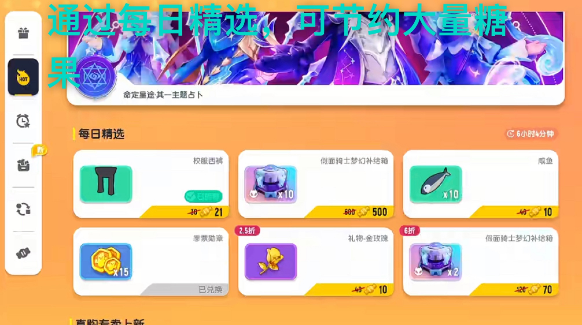 通过每日精选可以省下大量的糖果来拿下这次皮肤,不过这也是很费时间的。