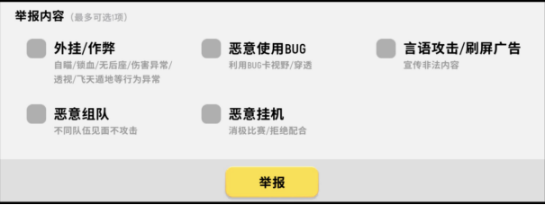 如果玩家在游戏内遇到了违规玩家,可以在观战界面或者游戏结算界面,点击举报按钮选择违规玩家ID进行举报,和谐游戏大家一起努力。