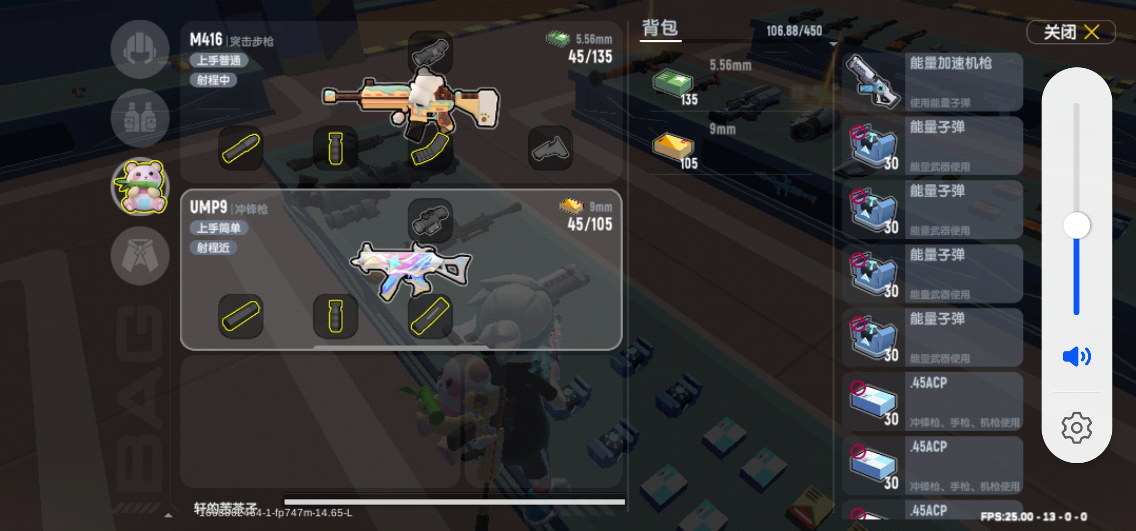 : UMP9 98k(说明:UMP9尽量只装2次和红点。100米内。因为冲锋枪的子弹掉落严重。100米外,敌人不定点使用98K)