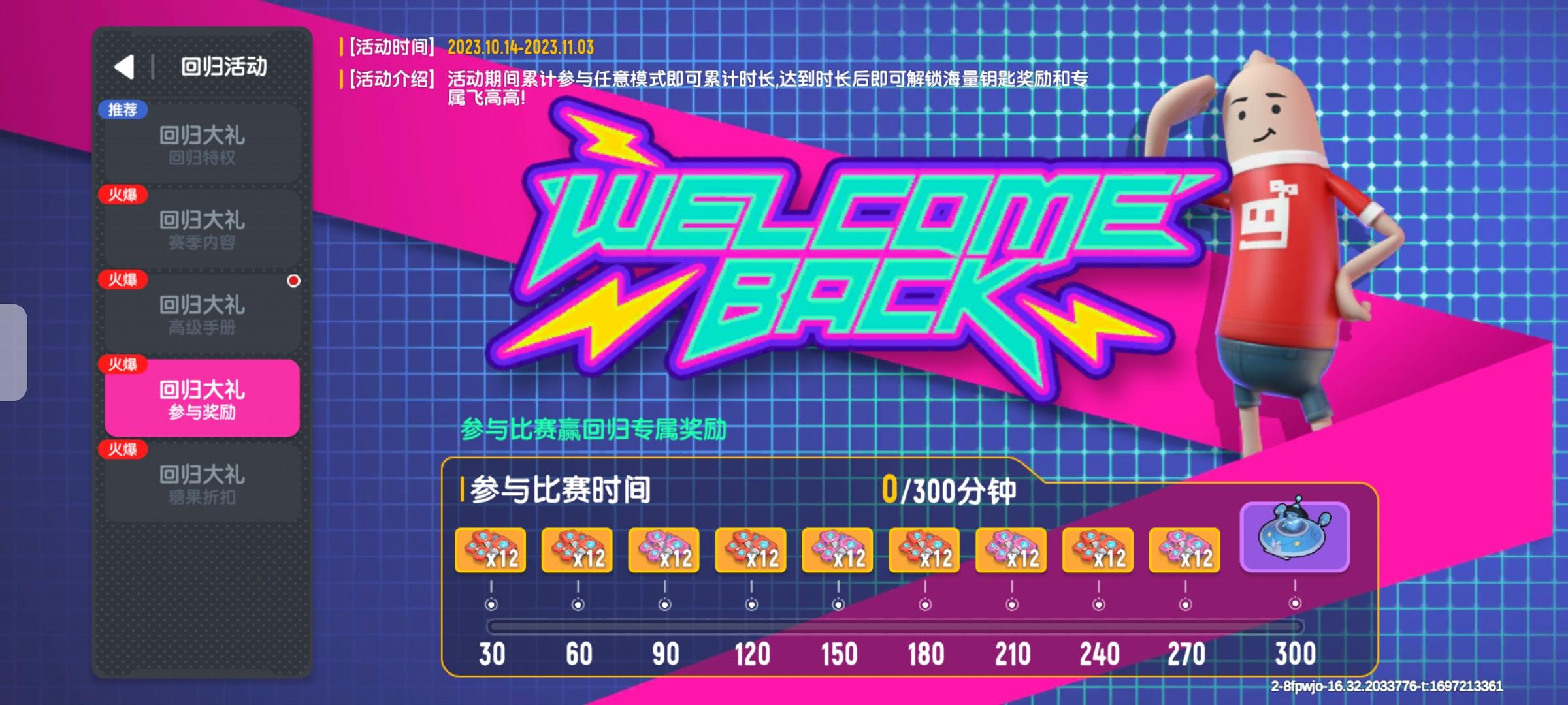 参与游戏时间越多,获得奖励就越多哦(30-270分钟总共可以获得60缤纷补给箱钥匙和48彩虹补给箱钥匙,以及累计300min的终极奖励~【提醒:终极奖励可能是随机的~】)