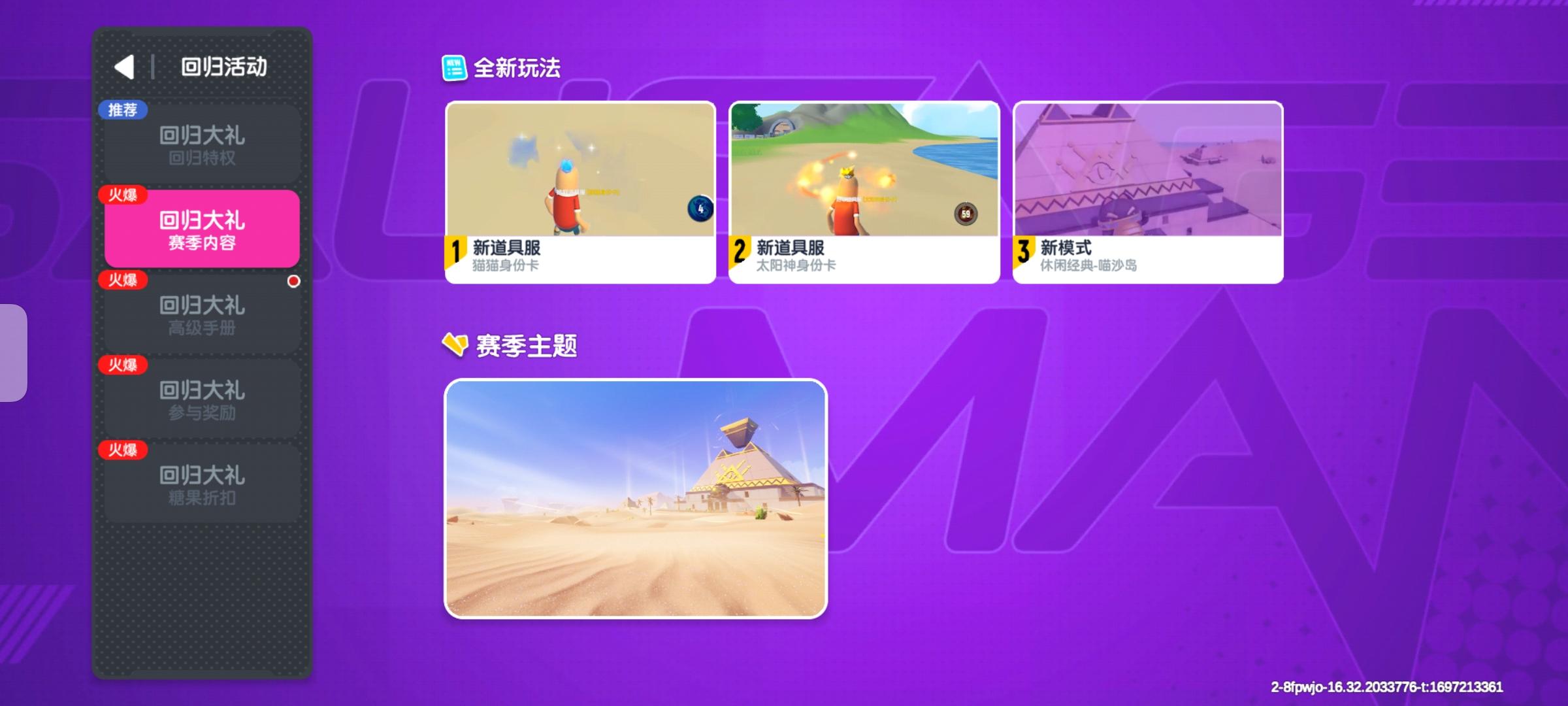 这个里是展示新赛季的主要玩法以及赛季主题,这个适用与长期没有回归的老玩家以及新手观看!