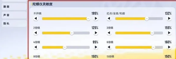 2、镜头灵敏度参数推荐一:将红点全息调整为123%,同时机瞄也调整同样的数值,并且将不开镜调整到120%。参数推荐二:调整不同的倍镜参数,比如设置80%数值的15倍镜,设置81%数值的8倍镜,高倍镜的话数值低一些更加流畅。