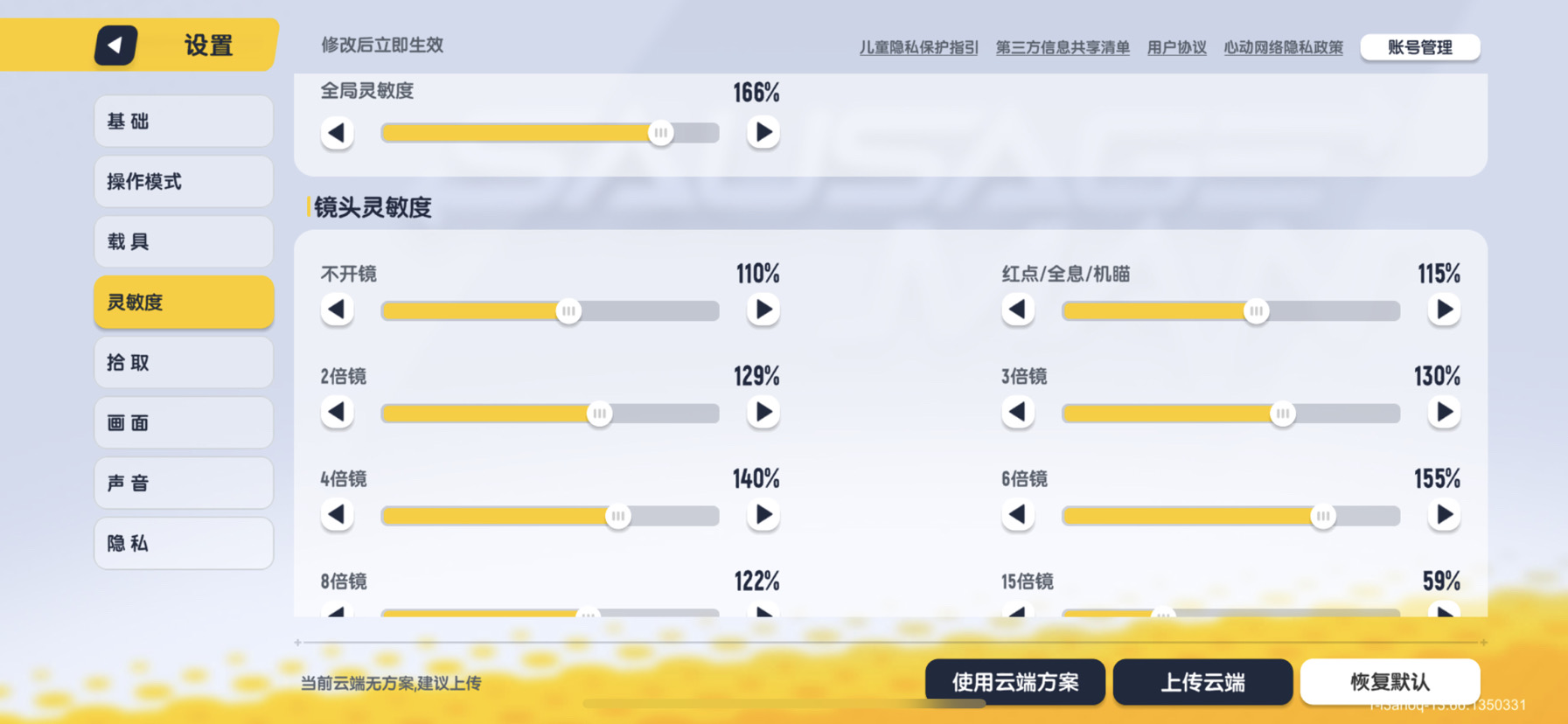 还有在新版本枪开镜会一直往上或往下,可能是你自己的灵敏度没有调好可以用一下我的如下: