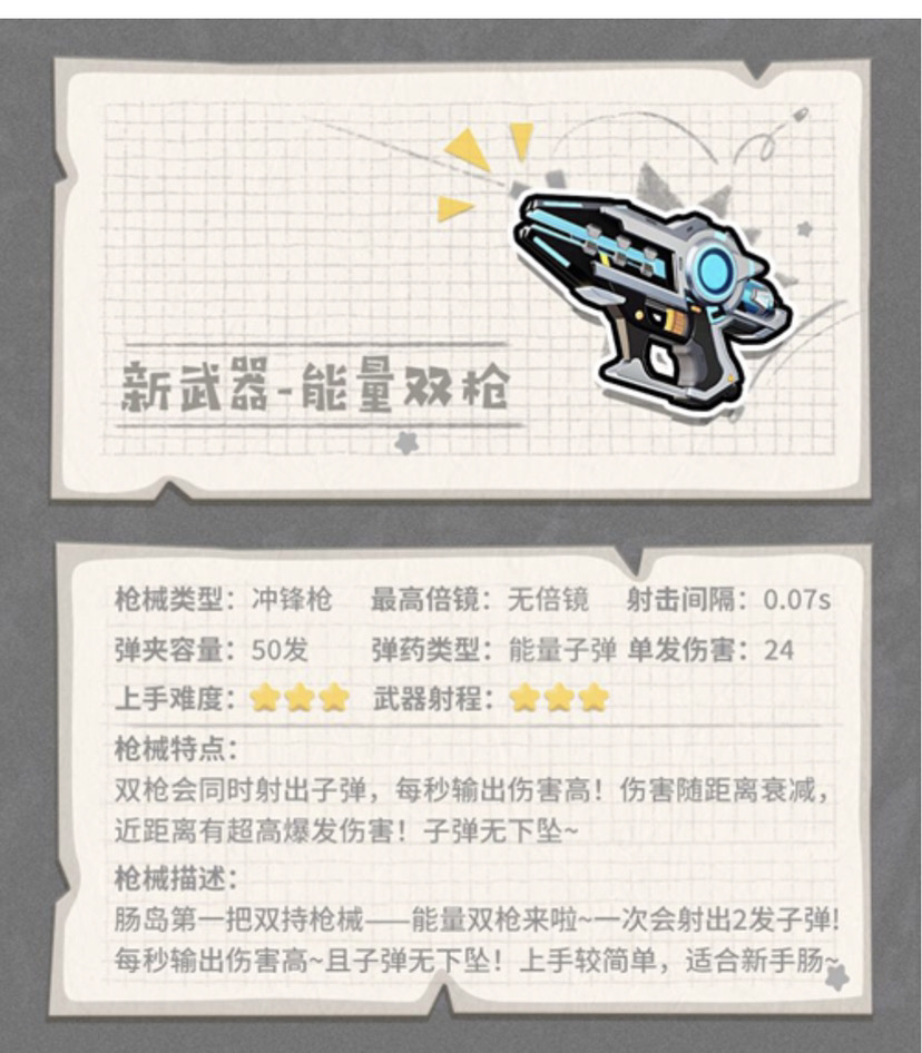 它是我们最新的武器射速很快,在贴脸时堪称无敌但是在远处它就开始减了,要看你枪法行不行。