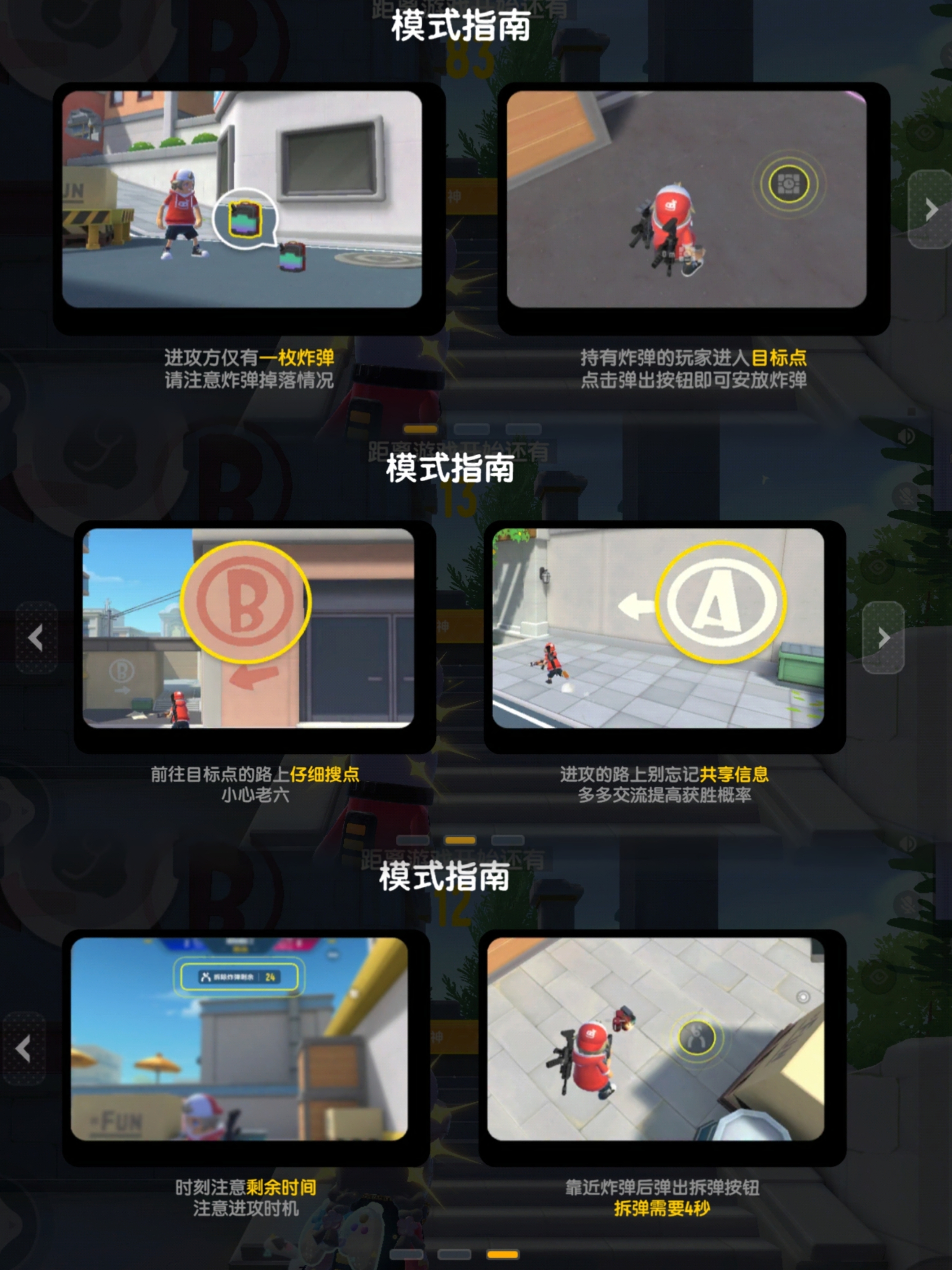 进攻方:需要在开局100秒内在A点或B点安放炸弹,保护炸弹在45秒内不被防守方拆除,或者全歼防守方即可获得胜利。