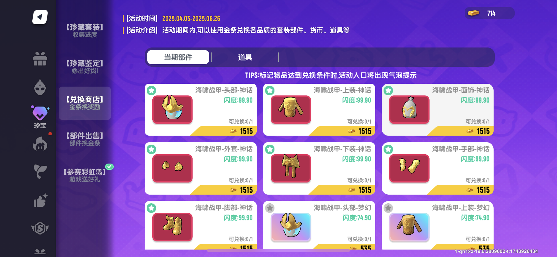 另外闪度低于之前鉴定品质闪度,则会放入“多余部件”列表,可以通过出售,获取金条