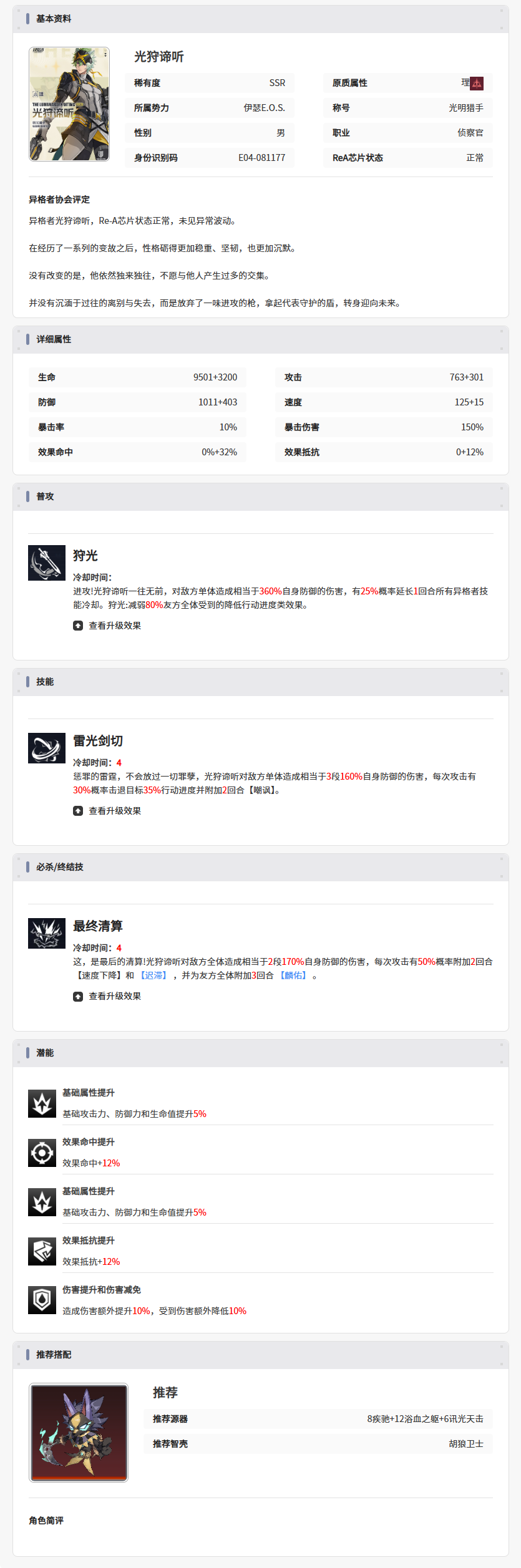 伊瑟【美梦 | 角色攻略】光明猎手 · 光狩谛听