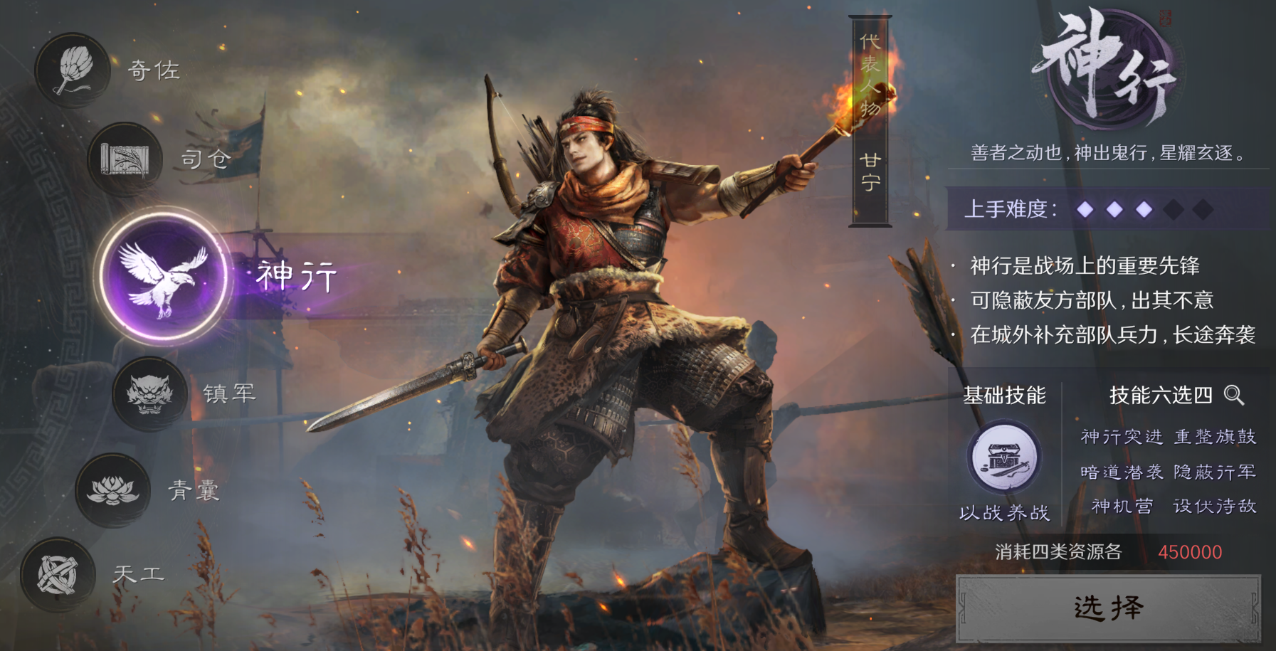 神行在新赛季中机动性较强,可以实现远距离战斗、阻碍敌军进攻、切断敌方辎重等战术。「设伏待敌」与「隐蔽行军」的配合,可以让神行出其不意地干扰敌方;「神行突进」和「暗道潜袭」给神行的机动性提供了保证;「神机营」还能让盟友快速支援。